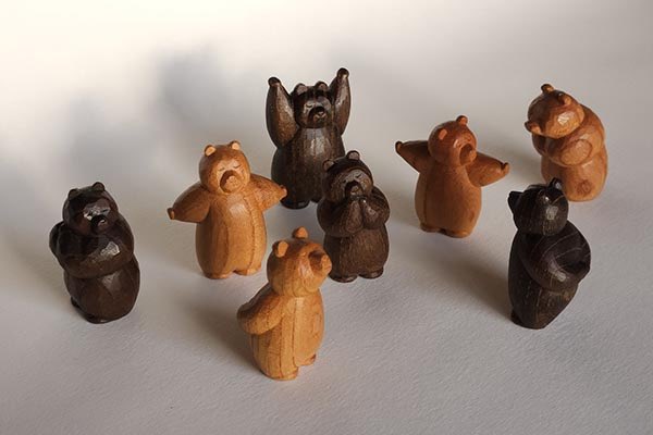 ■6月3日(水)~6月12日(金)■休廊日6月7日(日)■12:00~19:00 土曜・最終日12:00~17:00隙間に住み着く小さな木彫りのくまたちの巣穴を、こっそり覗いてみてください。宇野夏子大阪府出身。2013 京都伝統工芸大学校木工芸専攻 卒業。 大阪を拠点にグループ展やイベント等に出展。猫や熊、縁起物にまつわるものをモチーフに、小さな木彫りの置物を制作しております。
