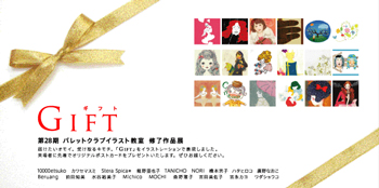 インターナショナルアカデミー「パレットクラブイラスト教室」28期生18名による修了作品展を開催 致します。~届けたいオモイ。受け取るキモチ。「GIFT」をイラストレーションで表現しました。来場者に先着でオリジナルポストカードをプレゼントいたします。是非お越し下さい。