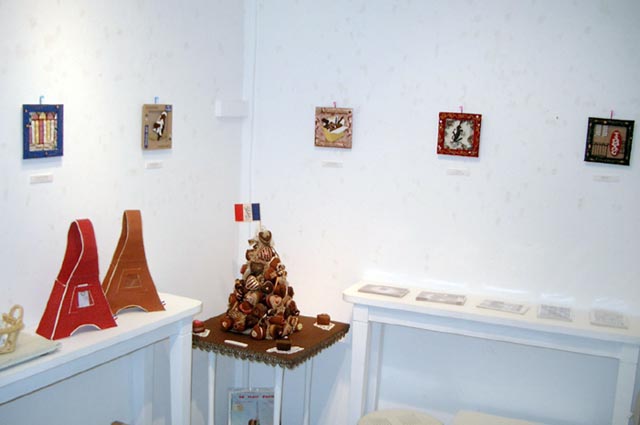 ‥フランス雑貨の部屋、シャンソンとミュゼットのライブ、ワインとフランス語サロン‥~2005年のギャラリー・センティニアルでの『サロン・ド・ネスパ』から2年。車一台分ほどのちいさなスペースにプチ・リタ?…フランス雑貨にあわせて、フランスの思い出のかけらを素材コラージュなどで表現した小品を一緒に展示します。通りがかりにちょっとのぞき込んでみたい…petite fenetre ~小さな窓のようなフランス的空間です。(立原、談)