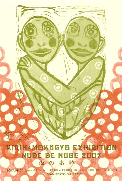 KirinのNUDEの森にようこそ!Kirinの森には、日々生まれでる様々なさまのNUDEが森の中の雨粒のように生まれています。会場全体を森に見立て、そのなかで生まれてきたNUDEたちをそこに生息するかのように展示します。版画(ソノカット)と紙版画などの版画世界と紙でできているオブジェや身近な素材を使った小物やアクリル画など、NUDE作品の世界を展開します。(木魚、談)