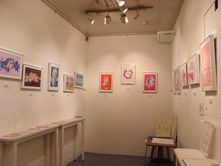 日本生命営業ツールである月刊ペーパー「家庭のいずみ」表紙お料理イラスト原画1年分(12枚)、禁断(!?)の人物画約10点、植物をモチーフにしたシーズナルでカラフルな作品5点を展示いたします。(さか井、談)